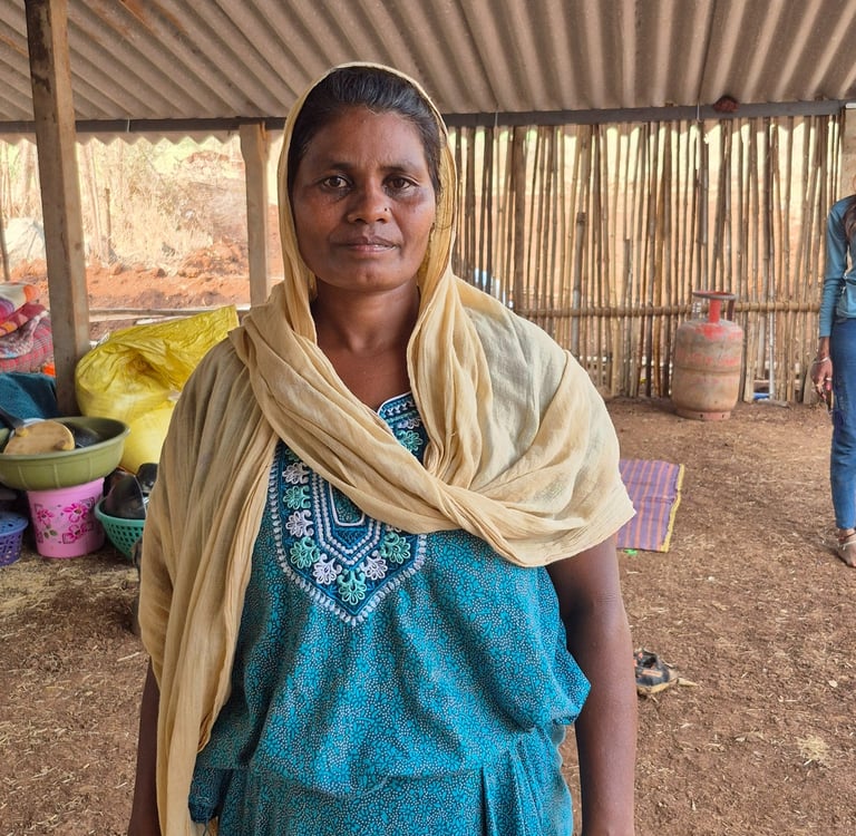 The house she owns is more a shelter than a home, with crumbling walls and no proper toilet. Rain sometimes seeps in, and the nights can be cold, but the promise of safety, however fragile, keeps her anchored. Her livelihood now comes mostly from the earth itself. Gulabben dreams of selling vegetables—maybe one day a lorry of her own, so she can earn without leaving her grandson behind. She imagines self-employment, making pickles or papad, hoping for the kind of training that would let her build something new, with dignity.