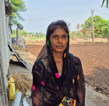 Their home stands on land owned by ancestors. Electricity flickers. Water spills from a cracked tap into steel pots lined along the wall. The air carries the mingled scent of dung fires, turmeric, and rain-soaked earth. Here, she bends beside her parents in fields stained red by monsoon, hands plunged deep in the soil. When there is work, she takes it—hauling bricks, gathering grass, her back aching by noon. Some days are filled with animal care, others with the rough labor that leaves her fingers raw.
